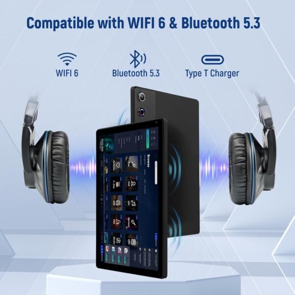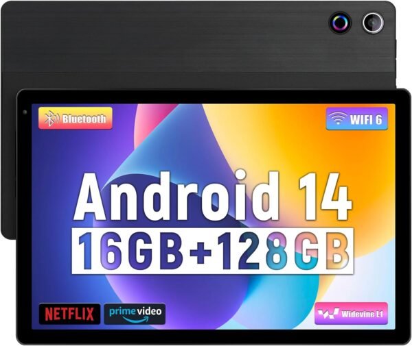 【WiFi 6+Bluetooth 5.3+Widevine L1】The Android 14 Tablet is compatible with WiFi6 and Bluetooth 5.3, featuring lower latency, stronger signals, and faster speeds, so you can enjoy a fast and smooth internet connection. This tablet is also compatible with Wideline L1 for smooth HD video playback of Netflix, Amazon Prime Video and more.